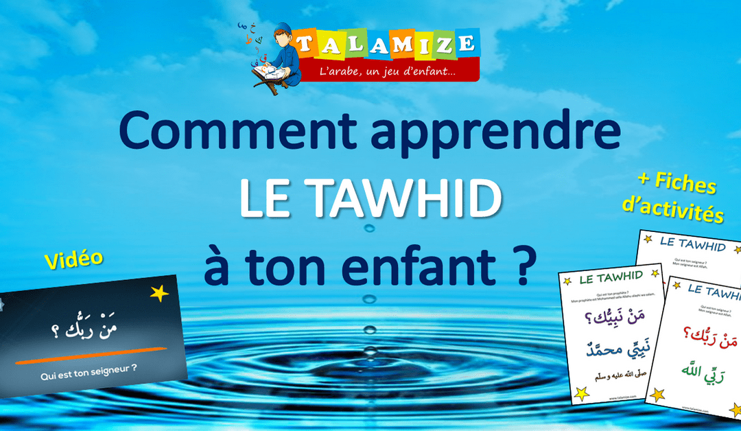 Comme tu le sais, chez Talamize on a un objectif : celui de permettre à nos enfants de prendre du plaisir dans l’apprentissage et d’aider les parents dans cette tâche avec nos différents supports ludo-éducatifs. Avec mes garçons, nous avons donc réalisé une petite vidéo pour apprendre le Tawhid à ton enfant, ou plutôt ses premières connaissances sur le Tawhid, afin que l’amour de celui-ci s’installe dans son cœur et qu’il grandisse avec incha Allah. Pour réaliser cette petite vidéo, nous nous sommes inspirés de la traduction d’un programme religieux pour enfant d’une madrassa de Quran à Médine. Le document en arabe se nomme : كتاب زاد براعم الهدى Dans celui-ci il y a une catégorie Tawhid, où l’enfant doit être capable de répondre correctement à certaines questions : J’en ai retenu dix et les ai compilées dans cette petite vidéo, qui je l’espère te sera utile comme elle l’a été pour nous al-hamdoulillah. Voici la liste des 10 questions auxquelles ton enfant sera capable de répondre avec cette petite vidéo, et les fiches d’activités que tu découvriras ci-dessous, le tout en arabe et en français.- Qui est ton seigneur ? Mon seigneur est Allah.